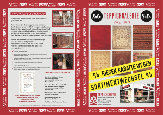Teppichgalerie Vazirian – Das größte Fachgeschäft für handgeknüpfte Teppich in Bonn und Umgebung. Wir wechseln unser Sortiment !